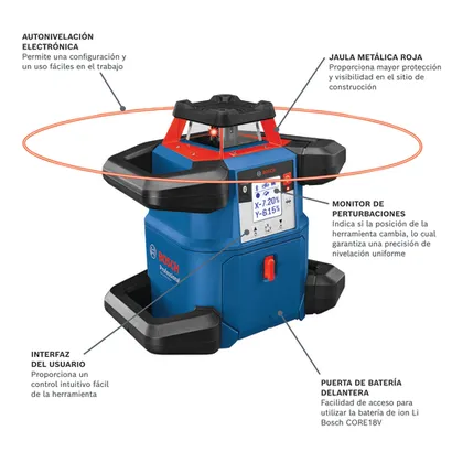 - Láser giratorio con todas las funciones: tiene Dual Dial-In Slope (doble cuadrante de inclinación), alimentación CORE18V®, conectividad Bluetooth®, calibración de usuario uCAL y más