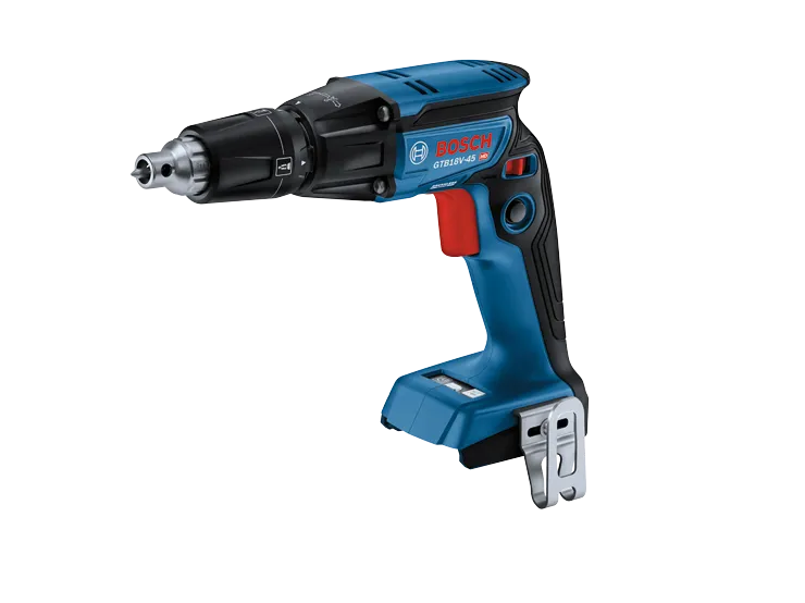 La pistola atornilladora eléctrica hexagonal sin escobillas (Brushless) GTB18V-45 de 1/4" de Bosch está diseñada para realizar el trabajo de forma cómoda y rápida, sin el cable de alimentación, cuando se clavan tornillos en paneles de yeso (tablaroca). Esta ligera pistola atornilladora cuenta con una empuñadura ergonómica bien equilibrada, ideal para sujetar cómodamente la herramienta, permitiendo que el pulgar y el dedo índice controlen la operación. Cuenta con Xtend Drive, un modo de bloqueo inteligente que activa el motor solo cuando la broca detecta presión. La herramienta sigue funcionando pero de forma silenciosa entre las activaciones del tornillo, lo que aumenta el tiempo de funcionamiento y disminuye el ruido. La pistola atornilladora eléctrica ha sido diseñada para que la mano del usuario esté más cerca del material de trabajo y lograr así un máximo control. Además, cuenta con un medidor de profundidad retráctil, por lo que el usuario no tiene que quitar el cono de la herramienta para invertir un tornillo. Con un eficiente motor sin escobillas, esta herramienta ofrece un máx. de 4,500 RPM para atornillar paneles de yeso (tablaroca) en láminas de roca, placas de yeso y vigas de metal o madera. Esta pistola atornilladora de velocidad variable presenta un interruptor de bloqueo fácil de usar y luz LED.