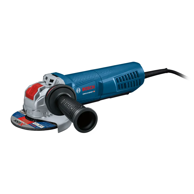La amoladora angular de velocidad variable GWX13-50VSP X-LOCK de 5" de Bosch, con interruptor de palanca con bloqueo, incorpora el soporte X-LOCK que permite un cambio de disco hasta cinco veces más rápido que en las interfaces convencionales. El sistema cuenta con un enganche audible al montar un disco X-LOCK en una amoladora X-LOCK. El disco se monta correctamente sin necesidad de una llave de gancho o tuercas de brida. El disco se libera desde la amoladora tirando de una palanca. La amoladora en ángulo ofrece máxima potencia: 13 A y 11,500 RPM. Cuenta con un sistema de ajuste de velocidad variable (de 2,800 a 11,500 RPM) que permite que el usuario adapte la velocidad a la aplicación. Equipada con inductores con recubrimiento epóxico y sistema de refrigeración directa del motor, esta amoladora está diseñada para lograr una mayor vida útil. Incorpora engranajes biselados y en espiral para una transmisión más suave de la potencia. Para mayor comodidad, cuenta con un mango auxiliar que controla las vibraciones (Vibration Control) y un soporte ajustable sin herramientas.