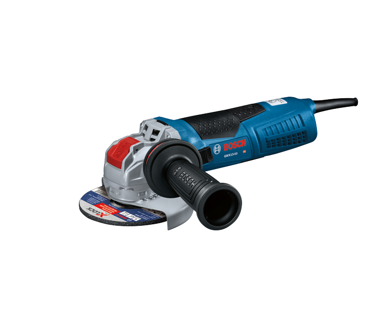 La amoladora en ángulo X-LOCK GWX13-60 de 6" de Bosch incorpora el soporte X-LOCK que permite un cambio de disco hasta cinco veces más rápido que en las interfaces convencionales. El sistema cuenta con un enganche audible al montar un disco X-LOCK en una amoladora X-LOCK. El disco se monta correctamente sin necesidad de una llave de gancho o tuercas de brida. El disco se libera desde la amoladora tirando de una palanca. La amoladora en ángulo ofrece máxima potencia de 13 A y produce 9,300 RPM. Equipada con inductores con recubrimiento epóxico y sistema de refrigeración directa del motor, esta amoladora está diseñada para lograr una mayor vida útil. Incorpora engranajes biselados y en espiral para una transmisión más suave de la potencia. Para mayor comodidad, está equipada con un mango auxiliar con Vibration Control, electrónica constante, KickBack Control y una protección ajustable sin herramientas.