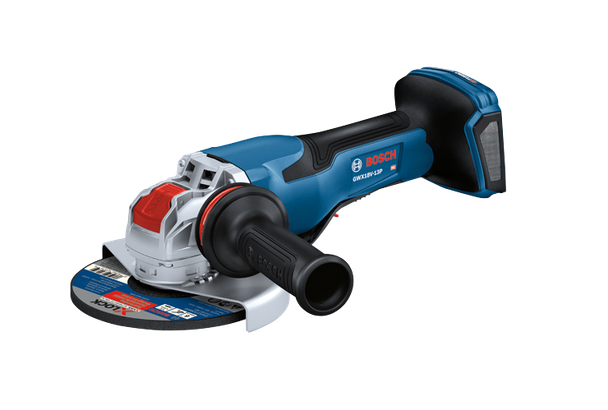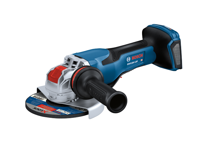 La amoladora angular X-LOCK de 18 V y 5-6" GWX18V-13PN de Bosch con interruptor de palanca antibloqueo ofrece la combinación más innovadora de desempeño, control y potencia en una amoladora inalámbrica. Incorpora el soporte X-LOCK y ofrece una interfaz de cambio de disco hasta cinco veces más rápida que las interfaces convencionales. El sistema cuenta con un enganche audible al montar un disco X-LOCK en una amoladora X-LOCK. El disco se monta correctamente sin necesidad de una llave de gancho o tuercas de brida. El disco se libera desde la amoladora tirando de una palanca. Esta herramienta forma parte del sistema PROFACTOR™, que combina la tecnología BITURBO Brushless™ con una batería High Power CORE18V®. La tecnología BITURBO Brushless™ consiste en un motor de alto desempeño y un sistema de transmisión diseñado para generar una potencia comparable a las herramientas con cable más exigentes. La amoladora incluye otros mecanismos electrónicos avanzados, por ejemplo: freno X-Brake, protección contra reinicio y KickBack Control. Incorpora un interruptor de palanca antibloqueo multiagarre, que permite diversas opciones de sujeción para mejorar la comodidad y el control. El interruptor tiene una función antibloqueo que apaga el motor si se libera el interruptor. También tiene engranajes biselados y en espiral, una empuñadura angosta y un mango lateral Vibration Control de dos posiciones. El protector ajustable sin herramientas está diseñado con varias posibilidades de ajuste fijo que permiten su colocación en diversos ángulos de trabajo.