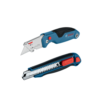 El set de 2 navajas multiusos Bosch H11-14100-1 incluye tanto una navaja plegable como una navaja de hoja desprendible de 18 mm para cortes versátiles en el trabajo. Ambas ofrecen una ergonomía y desempeño de corte excepcionales, con un diseño robusto y duradero, y cambios de hoja rápidos y fáciles. La navaja multiusos de hoja desprendible incluye un mecanismo integrado en la tapa trasera para acceder fácilmente a un borde de corte nuevo sin necesidad de otra herramienta. Compacta y portátil, la navaja plegable es ideal para llevar a diario y cuenta con un bloqueo de plegado de un botón, un innovador apoyo para el pulgar integrado para aplicar más fuerza al cortar materiales más resistentes, almacenamiento de hojas en el mango, cortador de cuerdas/correas de cajas y clip para cinturón para mayor comodidad. El set incluye: (1) navaja multiusos de hoja desprendible de 18 mm con hoja desprendible estándar precargada y (1) navaja multiusos plegable con (3) hojas multiusos estándar.