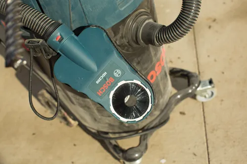 - El puerto para polvo es compatible con la boquilla de aspiradora de 1-3/8" de Bosch y puede adaptarse para boquillas de manguera de 1-1/4" / 2"