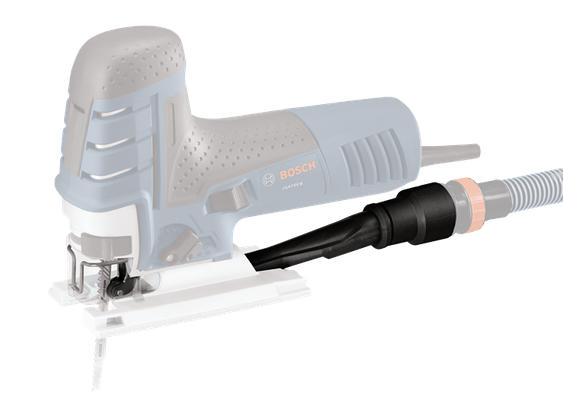 Este artículo permite mantener limpio el espacio de trabajo con más facilidad. Se conecta fácilmente a mangueras de aspiradora Bosch de 1-1/4" y 1-1/2". Para usar solo con las sierras caladoras JS470E y JS470EB de Bosch.