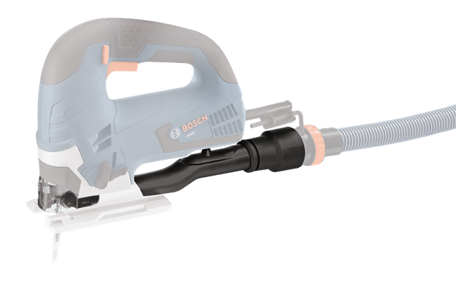 Este artículo permite mantener limpio el espacio de trabajo con más facilidad. Se conecta más fácilmente a mangueras de aspiradora Bosch de 1-1/4" y 1-1/2". Para utilizar solo con la sierra caladora JS365.