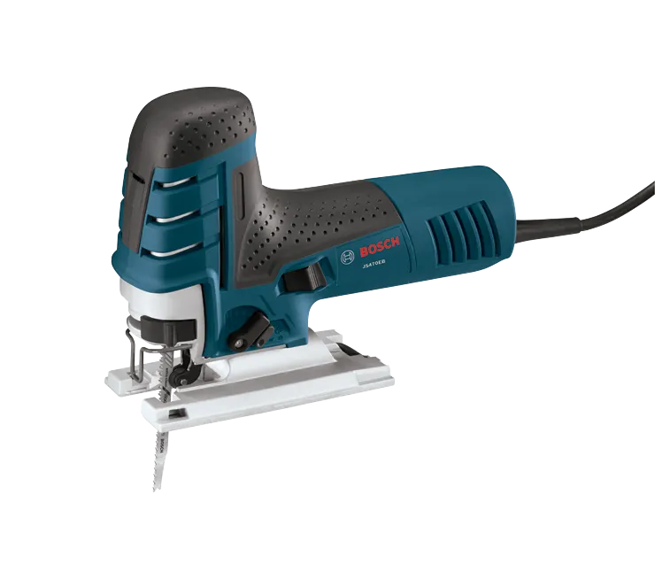 La sierra caladora de mano JS470EB de Bosch ofrece una precisión de corte excepcional. En trabajos de ebanistería e instalación de baños y cocinas se apreciará sin duda su motor de 7.0 A, el mejor de su clase, así como el control de velocidad variable, características que convierten esta sierra en una opción excelente para corte en curva. Proporciona de 500 hasta 3.100 carreras por minuto, con una longitud de la carrera de 1". Presenta un cuerpo ergonómico con empuñadura frontal superior de agarre flexible para mayor comodidad y control por parte del usuario. Se ha fabricado con una caja de engranajes de aluminio. Este mecanismo de bajo nivel de vibraciones y totalmente contraequilibrado ofrece un diseño de inmersión con bajo nivel de vibraciones y circuito Constant Response para mantener una velocidad constante bajo carga. Presenta una plataforma de aluminio fundido de gran tamaño con protección de plástico contra daños. La abrazadera de hoja multidireccional de la JS470EB ofrece fijación superior de hojas con vástago en T (no admite hojas con vástago en U). El dial de velocidad variable ajusta la velocidad de operación. La palanca de expulsión de hoja permite retirar la hoja sin necesidad de tocarla, una característica especialmente útil cuando estas están calientes. También cuenta con soplador de polvo para mayor visibilidad de la línea de corte.
