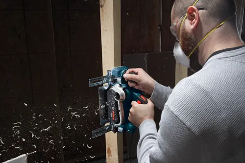 El kit de cepillo Bosch de 3-1/4"PL2632K incluye una herramienta con un motor de 6.5 A que produce 16.500 RPM para la eliminación rápida de material y un acabado liso. Las zapatas de aluminio frontal y trasera son mecanizadas con precisión juntas para lograr precisión y para que la herramienta tenga una ranura mecanizada para biselar. La herramienta también brinda una base accionada por resorte que eleva el cepillo para proteger la hoja y la parte donde se apoya la herramienta. Equipado con hojas reversibles de micrograno de carburo Woodrazor® de Bosch, el PL2632 de Bosch da al usuario la opción de un sistema de dos hojas para alojar hojas de acero de alta velocidad (se necesitan accesorios opcionales). El tope guía de doble soporte puede montarse a ambos lados de la herramienta, y su funda de plástico evita los daños en la puerta o en la superficie de la pieza de trabajo. La herramienta cuenta con un botón pulsador ambidiestro de bloqueo en apagado que ayuda a evitar los arranques accidentales, y posee un botón de bloqueo en encendido para uso prolongado, una combinación que solo ofrecen los cepillos Bosch. El botón de expulsión de astillas se puede mover para descargar los residuos a la izquierda o a la derecha, y los puertos para polvo se ubican en ambos lados de la herramienta para poner una bolsa grande para viruta. Este cepillo está fabricado con una banda conductora de polímero micro-V para una mayor durabilidad de la banda y un pivote de junta esférica para cable para una mayor facilidad de posicionamiento de la herramienta y el cable.